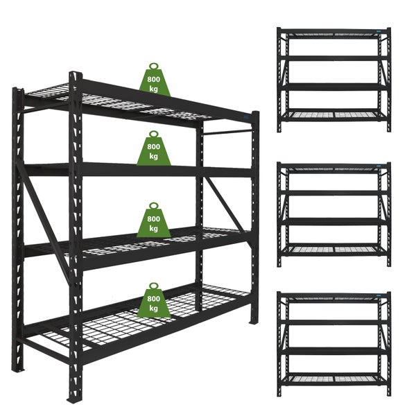 4x Schwerlastregal Enno 180x190x60 cm 3200 kg Stahl Stecksystem 4 Gitterböden Lagerregal Pickregal