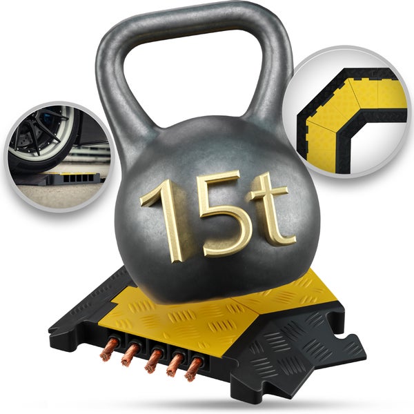 5 Kanal Ecke 45° Kabelbrücke mit Deckel überfahrbar Stolperschutz Rampe Brücke Protektor | 15 t Tragkraft | Gummi