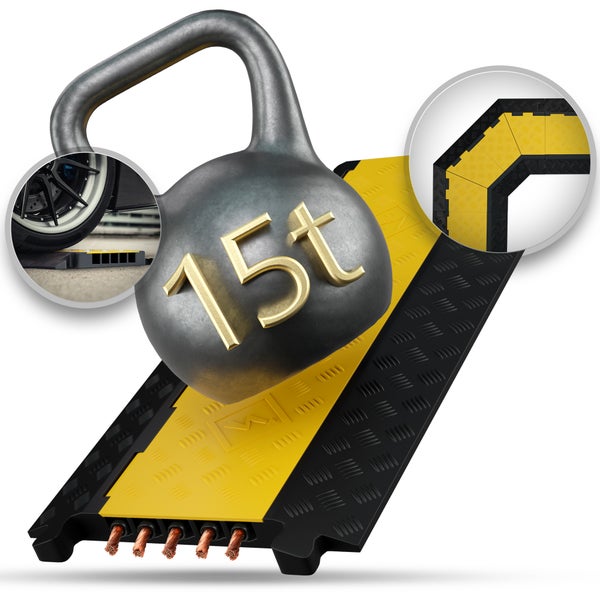 5 Kanal Kabelbrücke mit Deckel überfahrbar Stolperschutz Rampe Brücke Protektor | 15 t Tragkraft | Gummi
