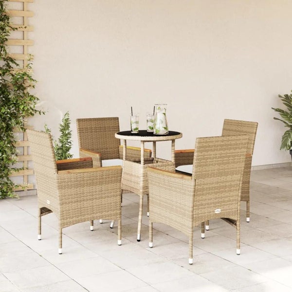 5-tlg. Garten-Essgruppe mit Kissen Beige Poly Rattan und Glas