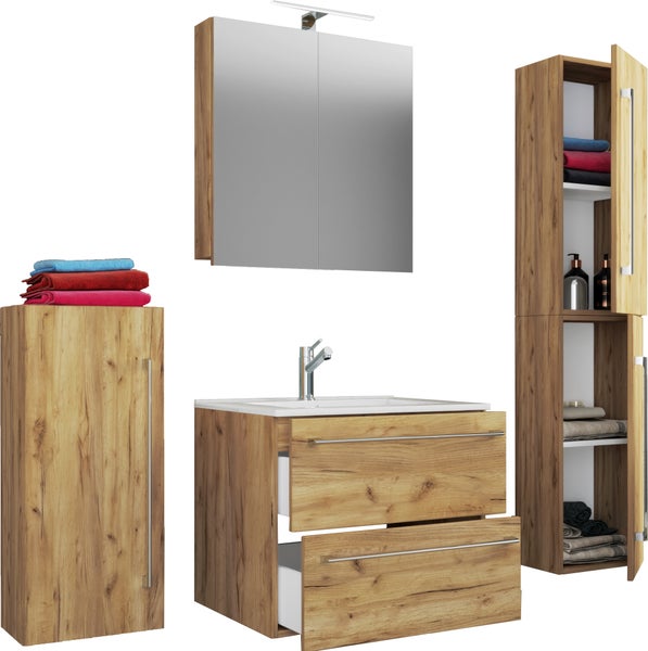 - Artikel besteht ausMidischrank, Spiegel, Waschtisch, Waschtischunterschrank, Hochschrank