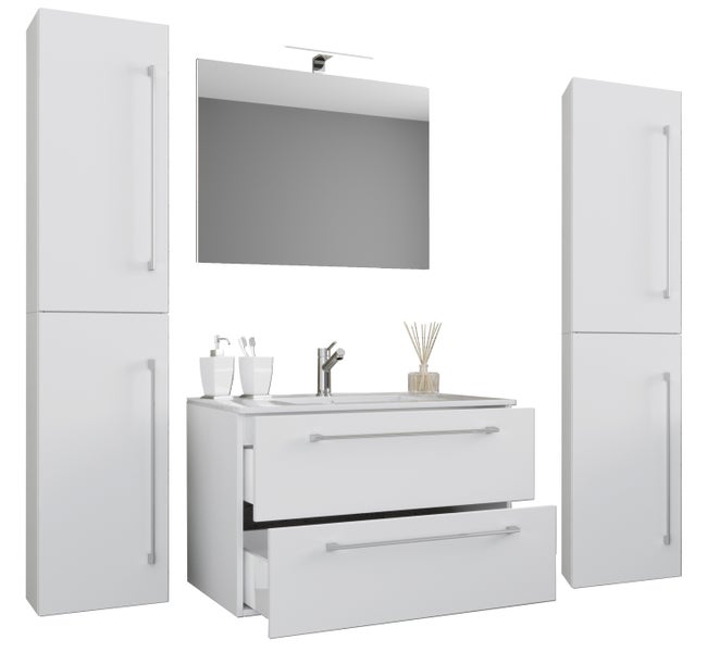 - Artikel besteht ausSpiegel, Waschtisch, Waschtischunterschrank, Hochschrank