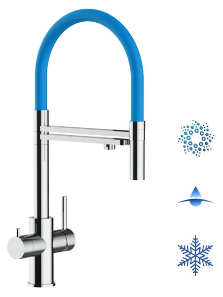 5 Wege Wasserhahn Küchenarmatur, Edelstahl Massiv mit 360° schwenkbarem Auslauf, abnehmbare 2 strahl Handbrause, Hochglanz / Hellblau