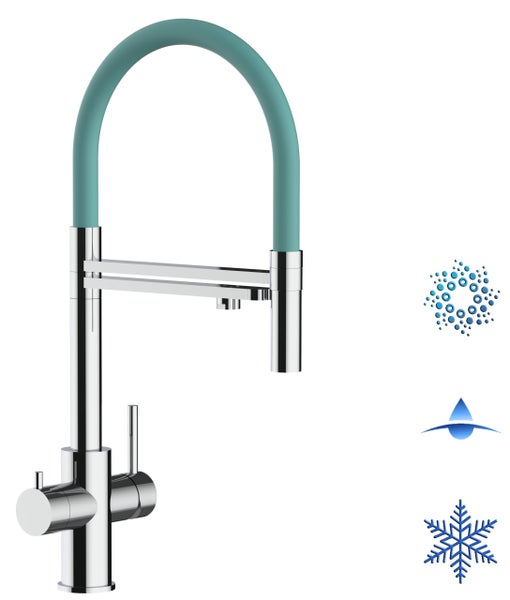 5 Wege Wasserhahn Küchenarmatur, Edelstahl Massiv mit 360° schwenkbarem Auslauf, abnehmbare 2 strahl Handbrause, Hochglanz / Türkis