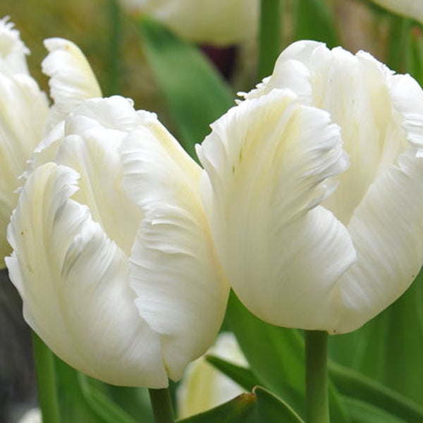 50 x Tulpenzwiebeln 'White Parrot'. Weiße Papageientulpe. Großblütig und dekorativ.