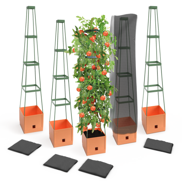 5er-Set Pflanzenturm Maxitom mit Pflanzenschutznetz