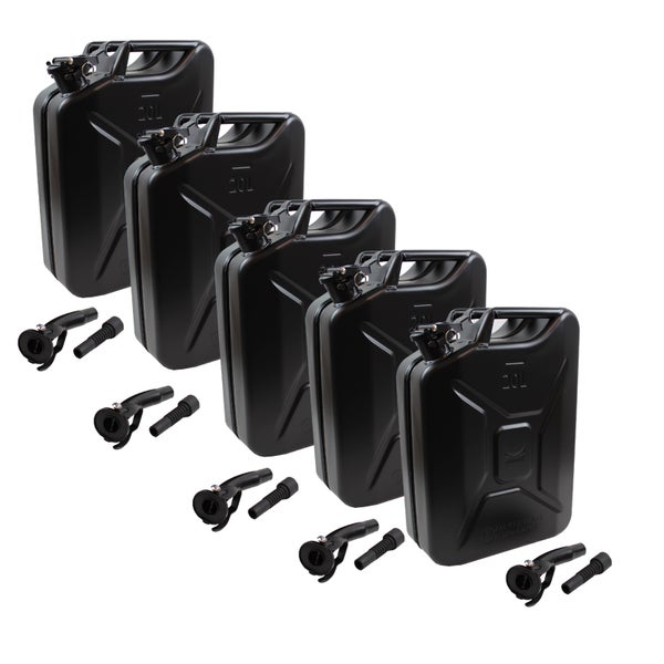 5x Benzinkanister 20 L mattschwarz mit Ausgießer Kraftstoffkanister Dieselkanister Metall Kanister für Benzin und Diesel