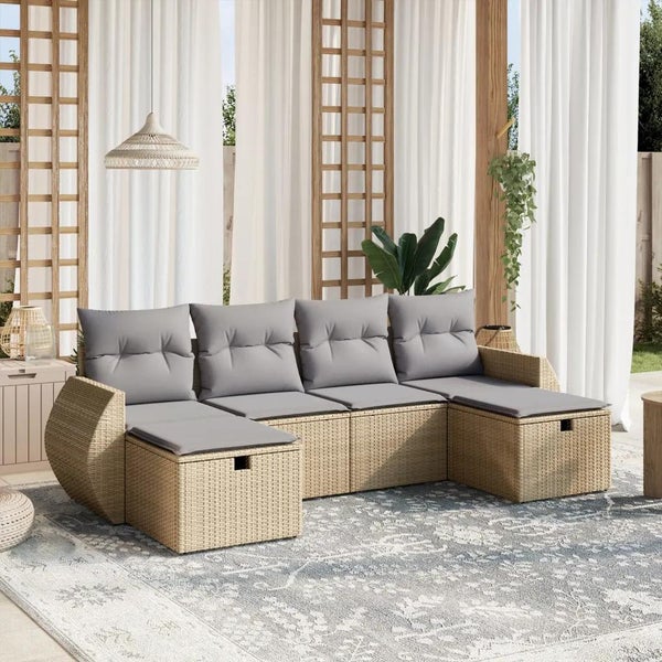 6-tlg. Garten-Sofagarnitur mit Kissen Beige Poly Rattan