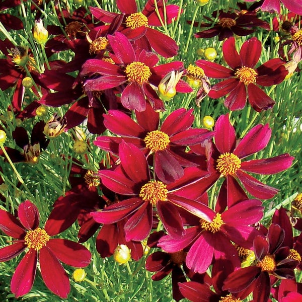 Entdecken Sie die leuchtend rote Schönheit von Coreopsis hybrida 'Red Satin'. Diese robuste Pflanze bringt Farbe und Freude in Ihren Garten!