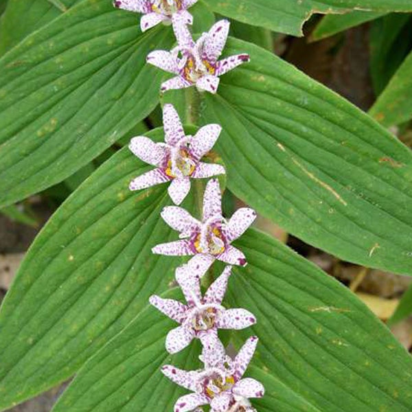 6 x Japanische Krötenlilie - Tricyrtis hirta - Spätsommer Blüher - Blatthöhe 40 cm - Topf 9cm x 9cm