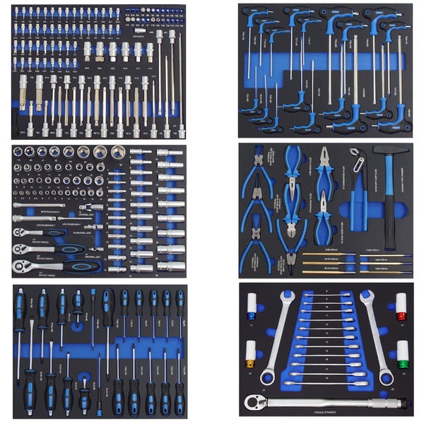 TRUTZHOLM Werkzeugeinlagen bestückt mit 254 tlg. Werkzeug in blau für Werkstattwagen