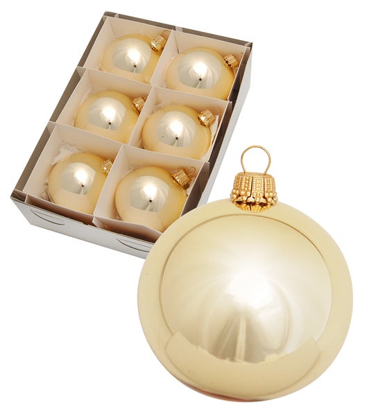 6cm Kugel Uni gold glänzend, 6 Stck., Weihnachtsbaumkugeln, Christbaumschmuck, Weihnachtsbaumanhänger