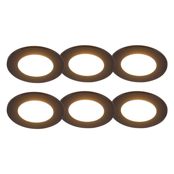 6er Set Einbaustrahler schwarz inkl. LED 3-Stufen dimmbar IP65 - Blanca