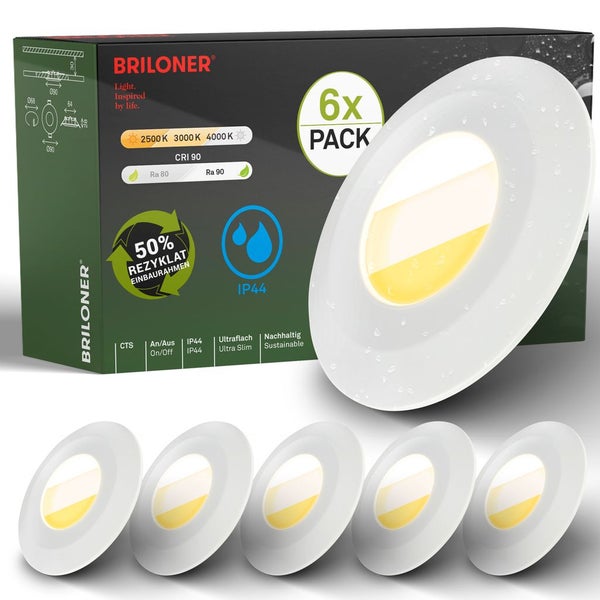 6er Set LED Bad Einbaustrahler LED Einbauleuchten Bad Spots CTS Flach Ra90