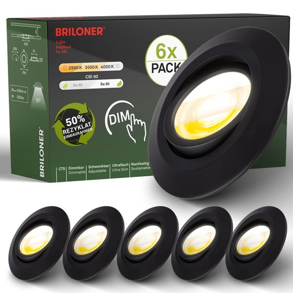 6er Set LED Einbaustrahler LED Einbauleuchten Spots schwenkbar dimmbar Ra90