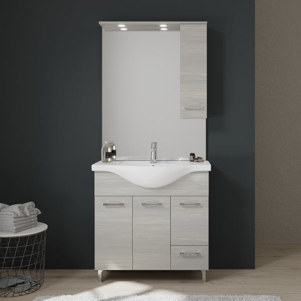 85 cm Badezimmermöbel-Set in Eiche grau Holzoptik | Rimini