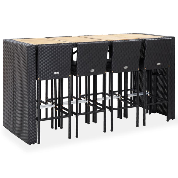 9-tlg. Garten-Bar-Set Poly Rattan und Akazienholz Schwarz