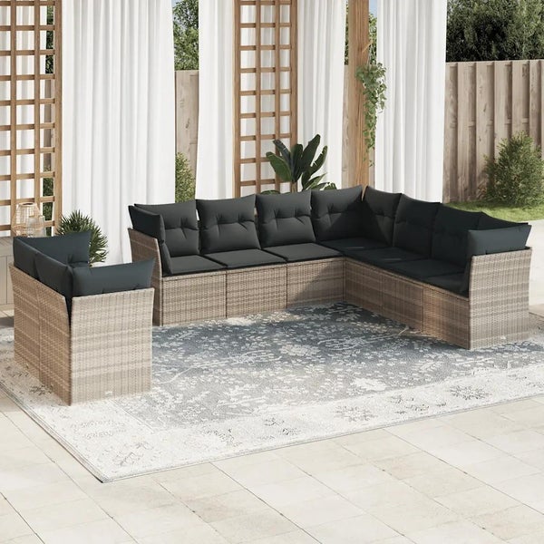 9-tlg. Garten-Sofagarnitur mit Kissen Hellgrau Poly Rattan