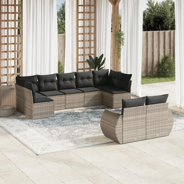 9-tlg. Garten-Sofagarnitur mit Kissen Hellgrau Poly Rattan