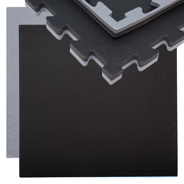 90x90cm Trainingsmatte mit Rand - 20mm Bodenschutz-Matte Grau Schwarz