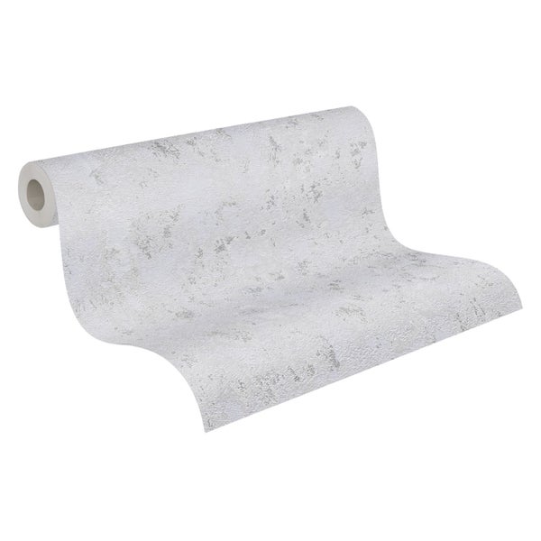 A.S. Création Tapete mit feiner Struktur Grau, Silber und Metallfarbe 53 cm x 10.05 m
