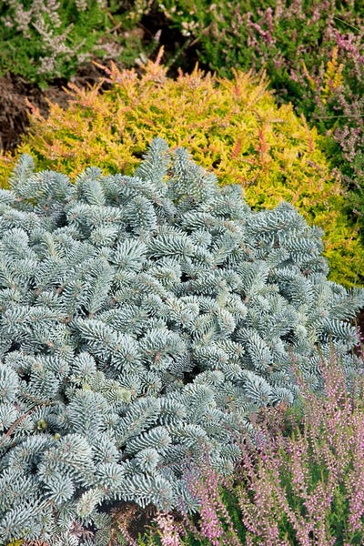 Als Solitär im Steingarten, im Vorgarten oder im vorderen Bereich eines Beetes setzt die Zwergtanne stilvolle Akzente; ebenso überzeugt sie als Kübelpflanze auf Terrasse und Balkon sowie in Heide- oder Japangärten, wo ihre ruhige, dichte Erscheinung harmonisch wirkt. Der Blütenstrauch-Charakter eines klassischen Gartenstrauchs wird hier durch die edle Nadeloptik ersetzt, was die Pflanze zu einer besonderen Alternative im Sortiment der Ziergehölze macht. Abies koreana Blaue Hexe bevorzugt einen sonnigen bis halbschattigen Standort mit humosem, leicht saurem, lockeren und gut durchlässigen Boden; Staunässe sollte vermieden werden. Regelmäßige, aber maßvolle Wassergaben sorgen für gleichmäßige Frische. Ein Rückschnitt ist in der Regel nicht nötig, gelegentliche Formschnitte nach dem Austrieb sind möglich. Im Kübel empfiehlt sich eine gute Drainage und eine leichte Frühjahrsgabe Koniferendünger für einen dichten, vitalen Austrieb.