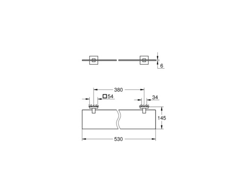 Darum solltest Du zugreifen: Die Grohe Start Cube Ablage ist eine elegante, 530 mm breite Glasablage mit mattschwarzen Halterungen, die Deinem Badezimmer ein modernes und gepflegtes Aussehen verleiht. Die verdeckten Befestigungen sorgen für ein elegantes Finish, während die pflegeleichte Grohe Long-Life Oberfläche langlebig und widerstandsfähig ist, sodass die Ablage auch nach Jahren noch makellos aussieht. Dank der beiden Montageoptionen - Kleben oder Schrauben - kannst Du die Ablage flexibel und stabil an der Wand befestigen. Das mitgelieferte Montagematerial ermöglicht eine einfache Installation. Mit einer maximalen Haltekraft von 5 kg bietet die Ablage ausreichend Platz für Seife, Zahnbürsten, Kosmetika oder Rasierer.