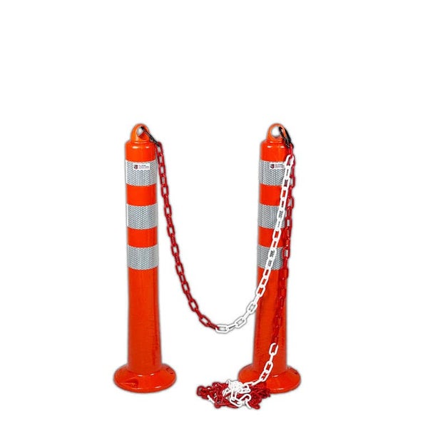 Absperrpfosten orange flexibel 75cm Set mit Kette +Befestigung + Reflexfolie / 2 Pfosten (3m Kette)
