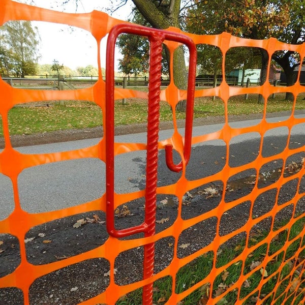 Set 4 Absperrhalter + 10 Meter Fangzaun, Absperrnetz, Maschenzaun, Bauzaun auf Rolle Kunststoff Reissfest, 150 gr qm