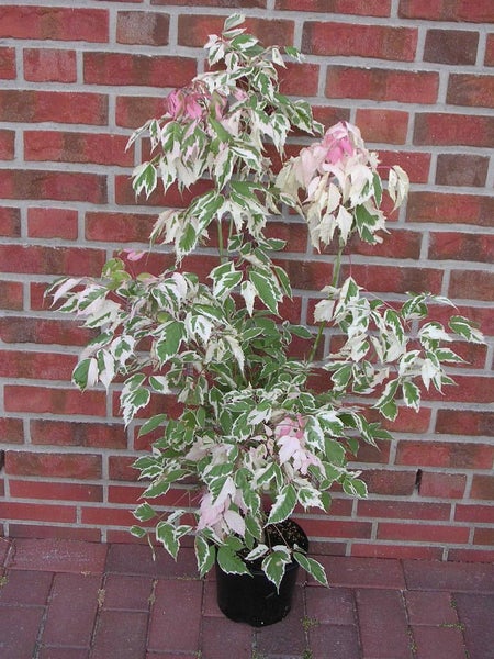 Der Flamingo-Ahorn ist ein auffälliger, schnell wachsender Baum mit buntem Laub. Die jungen Blätter sind grün mit rosa und weißen Sprenkeln, was ihm ein einzigartiges Aussehen verleiht. Er ist ideal für größere Gärten und bietet im Herbst eine schöne Laubfärbung. Zudem ist er pflegeleicht und anpassungsfähig an verschiedene Standortbedingungen.