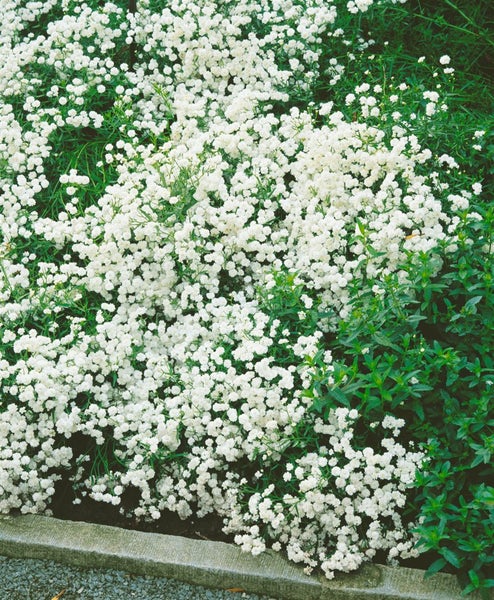 Achillea ptarmica ‘The Pearl’, die Sumpf-Schafgarbe, ist eine klassische Gartenstaude, die mit dicht gefüllten, perlweißen Blütenköpfen von Juni bis in den September hinein bezaubert. Die pomponartigen Blüten sitzen zahlreich an standfesten, aufrechten Stielen und bilden über dem frischgrünen, schmal lanzettlichen Laub einen luftigen, dennoch kompakten Flor. Mit einer Wuchshöhe von etwa 60 bis 80 cm wächst diese Beetstaude horstig bis leicht ausläuferbildend und zeigt sich im Staudenbeet ebenso zuverlässig wie im Bauerngarten. Als Schnittstaude überzeugt ‘The Pearl’ mit langer Haltbarkeit in der Vase und eignet sich auch hervorragend für romantische Sommersträuße. Im Garten entfaltet sie ihre Wirkung als Solitär in kleineren Beeten, in der Gruppenpflanzung entlang von Wegeinfassungen oder am sonnigen bis halbschattigen Rand von Rabatten und naturnahen Pflanzungen; in großzügigen Kübeln auf der Terrasse bringt sie eine elegante, helle Note ins Arrangement, sofern das Substrat gleichmäßig frisch bleibt. Bevorzugt werden sonnige Lagen mit humosem, nährstoffreichem, gut durchlässigem, frisch bis feuchtem Boden; kurzfristige Trockenphasen werden toleriert, anhaltende Trockenheit mindert jedoch die Blühfreude. Ein Rückschnitt nach der ersten Hauptblüte fördert die Nachblüte, regelmäßiges Ausputzen hält den Blütenflor üppig. Alle paar Jahre empfiehlt sich eine Teilung zur Verjüngung und zur Kontrolle des Wuchses. Im Vorgarten, im gemischten Staudenbeet oder als lebendiges Bindeglied zwischen Gräsern und anderen Blütenstauden zeigt sich diese Gartenstaude pflegeleicht, langlebig und vielseitig kombinierbar.