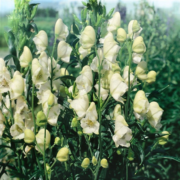 Aconitum napellus 'Album', Eisenhut, weiß, ca. 11x11 cm Topf
