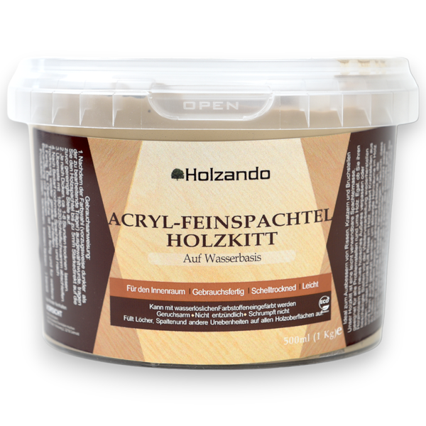 Unser Holzando Holzkitt Feinspachtel ist eine leicht verwendbare Spachtelmasse auf Acrylbasis. Geeignet für alle Problemstellen rund ums Holz. Egal, ob Sie ihren Holzmöbeln ein neues hübsches Äußeres verpassen oder beschädigte Stellen vor der Weiterverarbeitung wiederherstellen wollen – unser Holzando Holzkitt füllt Risse im Holz, bessert Kratzstellen aus und kann auch genutzt werden, um störende Hohlräume im Holz zu füllen.