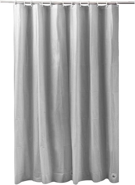 ADOB Anti-Schimmel Duschvorhang aus Peva in Grau, Maße 180 x 200 cm, waschbar, mit Gewichtsband und 12 Duschvorhangringen