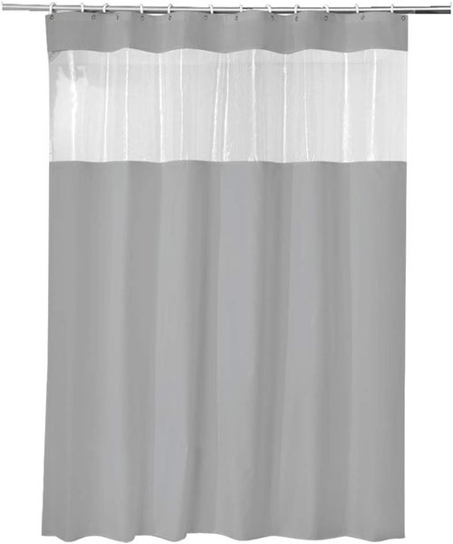 ADOB Anti-Schimmel Duschvorhang aus Peva in Schwarz mit Sichtfenster, Maße 180 x 200 cm, waschbar, mit Gewichtsband und 12 Duschvorhangringen