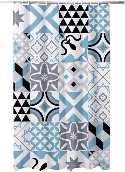 ADOB Textil Duschvorhang Motiv Kacheln 180 x 200 cm, waschbar, mit Gewichtsband und 12 Duschvorhangringen