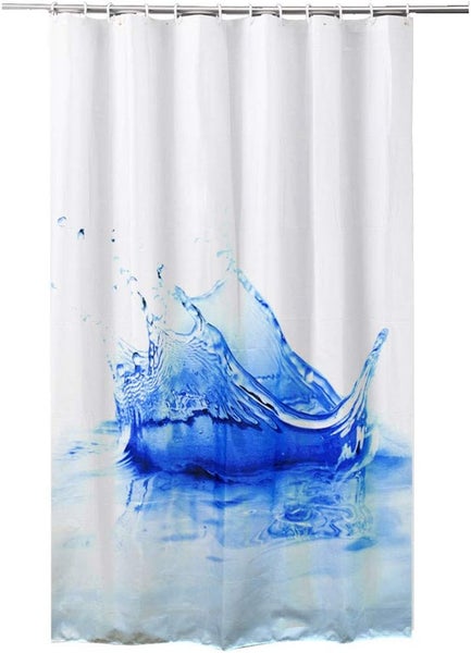 ADOB Textil Duschvorhang Motiv Splash 180 x 200 cm, waschbar, mit Gewichtsband und 12 Duschvorhangringen
