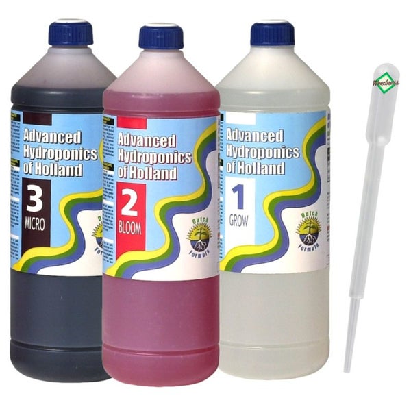 Advanced Hydroponics 3-Teiliges Starter-Set – Komplettdünger für Wachstum & Blüte, je 500 ml (Bloom, Micro, Grow) für alle Pflanzenarten mit Pipette