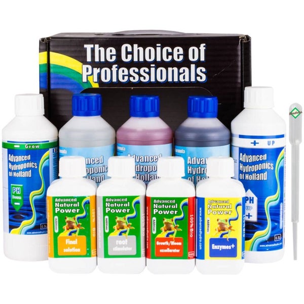 Advanced Hydroponics 9-Teiliges Dünger Starter-Set – Komplettnährstoffset für optimales Wachstum & Blüte, inklusive pH-Regulierung, Enzymen & Root, vielseitig für alle Pflanzenarten
