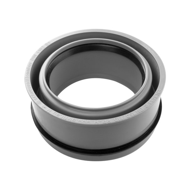 Das Airfit Abwasser-Innenreduzierstück mit einem Innendurchmesser von 110 mm und einem Außendurchmesser von 160 mm wird zum Verbinden von Abwasserrohren für den waagerechten und senkrechten Einbau verwendet, die keine Muffe benötigen. Dieses besteht aus Polypropylen.