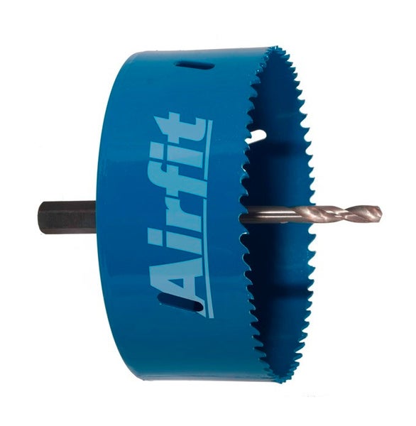 Der Airfit Kreisschneider wird zum Schneiden, bzw. Bohren von HSS-Bimetall, komplett, für Kunststoff und Metall verwendet. Dieser hat einen Durchmesser von 106 mm und eine Schnitttiefe von 48 mm. Dieser dient als Zubehör zur Montage einer Airfit Abgang DN110.