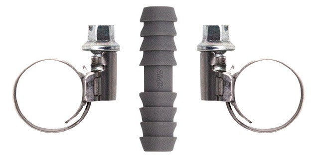 Das Airfit Schlauchkupplungsset 8mm, PP, ist bis 90° C heißwasserbeständig, Druckstufe PN6, inklusive 2 Edelstahl-Schlauchschellen W2.