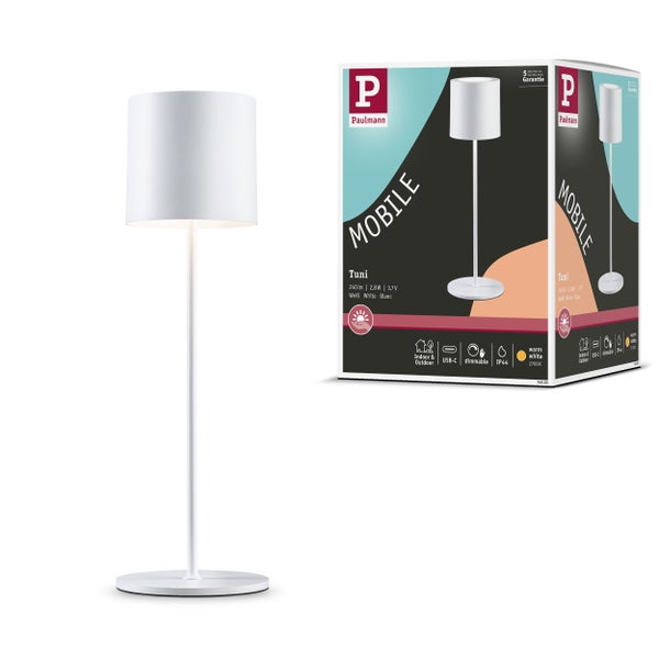 Akkuleuchte Tuni IP44 dimmbar 2700K Weiß matt