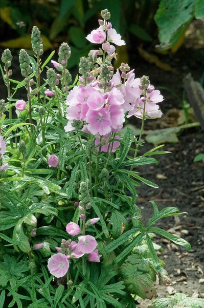 Alcalthaea x suffrutescens ‘Parkfrieden’, die edle Strauchmalve bzw. Buschmalve, vereint die Robustheit von Stockrose und Malve zu einem ausgesprochen blühfreudigen Gartenstrauch. Von Frühsommer bis in den Herbst schmückt sich dieser halbstrauchige Dauerblüher mit großen, einfach schalenförmigen Blüten in zartem Apricot-Rosa mit warmem Schimmer, die vor dem frischgrünen, leicht gelappten Laub besonders harmonisch wirken. Der Wuchs ist dicht und aufrecht-buschig, im Jahresverlauf kräftig durchtreibend und je nach Standort etwa 120 bis 180 cm hoch, wodurch ‘Parkfrieden’ als Solitär, Blütenstrauch oder in der gemischten Staudenrabatte eindrucksvoll zur Geltung kommt. Ob im sonnigen Vorgarten, als lockerer Blütenhecken-Baustein, in der Gruppenpflanzung mit Ziergräsern und Sommerstauden oder als größere Kübelpflanze auf Terrasse und Hof – die Sorte liefert über Monate eine elegante, parkähnliche Wirkung. Bevorzugt wird ein vollsonniger, warmer, windgeschützter Platz mit durchlässigem, humosem und eher nährstoffreichem Boden; kurzfristige Trockenheit wird nach dem Einwurzeln gut toleriert, Winternässe sollte vermieden werden. Ein kräftiger Rückschnitt im zeitigen Frühjahr auf alte Triebe fördert den kompakten Neuaufbau und die reiche Blüte, während ein moderates Nachdüngen im Frühjahr die Vitalität unterstützt. In rauen Lagen ist ein leichter Winterschutz der Basis sinnvoll. Kombiniert mit Rittersporn, Katzenminze, Salbei oder Ziergräsern schafft Alcalthaea ‘Parkfrieden’ eine langlebige, romantische Stimmung im Bauerngarten wie im modernen Staudenbeet und überzeugt als pflegeleichter, schnittverträglicher Gartenstrauch mit außergewöhnlicher Blütenfülle.