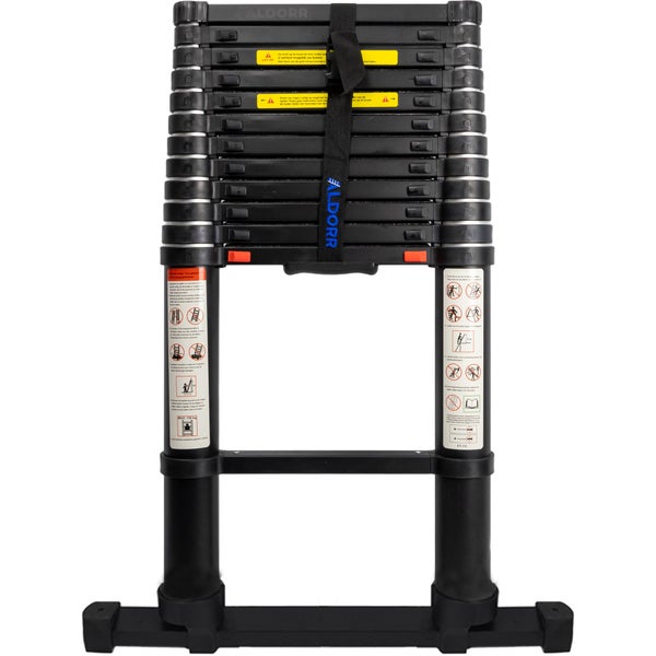 Die ALDORR Professional Teleskopleitern sind mit hochwertigem Aluminium ausgestattet und zeichnen sich durch extra breite Sprossen und ALDORR Optigrip™ aus. Darüber hinaus zeichnet sich diese professionelle Linie der ALDORR-Leitern durch schwarz beschichtete Teile an der Leiter aus. Wie bei den ALDORR Home-Teleskopleitern können Sie nicht nur sicher in der Höhe arbeiten, sondern die Teleskopleiter dank des professionellen Soft-Close-Systems auch sicher ein- und ausklappen.