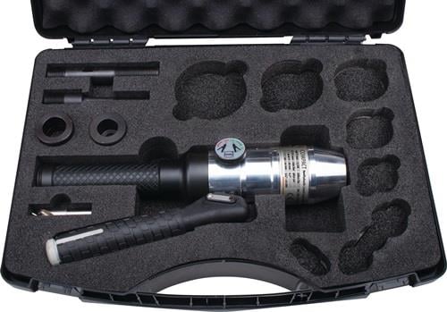 für den Einsatz im Schaltanlagen- und Steuerungsbau geeignet für alle Blechlochersysteme exakt abgestimmtes Überdruckventil ohne Stempel und Matrizen Merkmale Werkzeugaufnahme: 19mm max. Betriebsdruck: 680bar Kolbenhub: 18mm Ausführung: gerade Stanzkraft: 75 kN