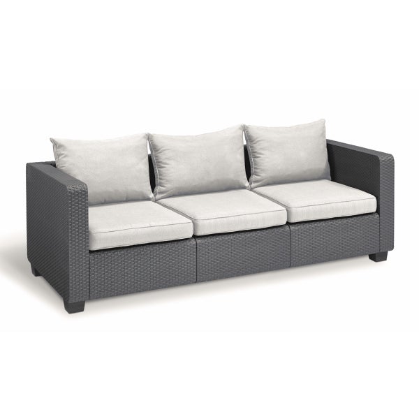 Allibert Salta 3-Sitzer Anthrazit mit Kissen Sand-Rattanoptik Wetterfest Gartenmöbel Gartensofa