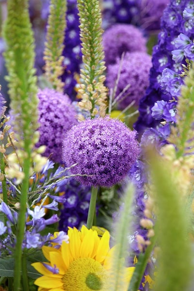 Allium aflatunense ‘Gladiator’, der imposante Riesen-Zierlauch, setzt mit seinen perfekt kugelrunden, purpurvioletten Blütenbällen eindrucksvolle Akzente im Staudenbeet. Der Schmucklauch treibt im Frühjahr mit graugrünen, lanzettlichen Blättern aus, die zur Blütezeit im späten Frühjahr bis frühen Sommer, meist von Mai bis Juni, teilweise einziehen – ein natürlicher Prozess, der die majestätischen, 15–20 cm großen Blütenkugeln noch stärker in den Fokus rückt. Auf eleganten, straffen Stielen von etwa 90–120 cm Höhe wirkt dieser Kugellauch als Solitär ebenso überzeugend wie in Gruppenpflanzungen und fügt sich harmonisch in gemischte Rabatten, Präriebeete und moderne Kiesgärten ein. Auch als Kübelpflanze auf Terrasse oder Balkon ist der Zierlauch eine charakterstarke Wahl, besonders in Kombination mit Ziergräsern, Rosen oder trockenheitsverträglichen Stauden wie Salvia und Nepeta. Ein sonniger Standort fördert die intensive Färbung und die standfeste Wuchsform, während durchlässige, eher nährstoffreiche und kalkverträgliche Böden Staunässe vermeiden und eine langlebige Entwicklung unterstützen. Nach dem Verblühen bleiben die Samenstände dekorativ und geben der Pflanzung architektonische Struktur, ob als Schnitt- oder Trockenblume in der Vase oder als Blickfang im Garten. Pflegeleicht und robust überzeugt Allium ‘Gladiator’ mit zuverlässiger Winterhärte, moderatem Wasserbedarf und einem unkomplizierten Pflegeprofil; eine leichte Düngung im Frühjahr und die ungestörte Reife des Laubs reichen aus, um den Zierlauch Jahr für Jahr zu einer spektakulären Erscheinung im Garten zu machen.