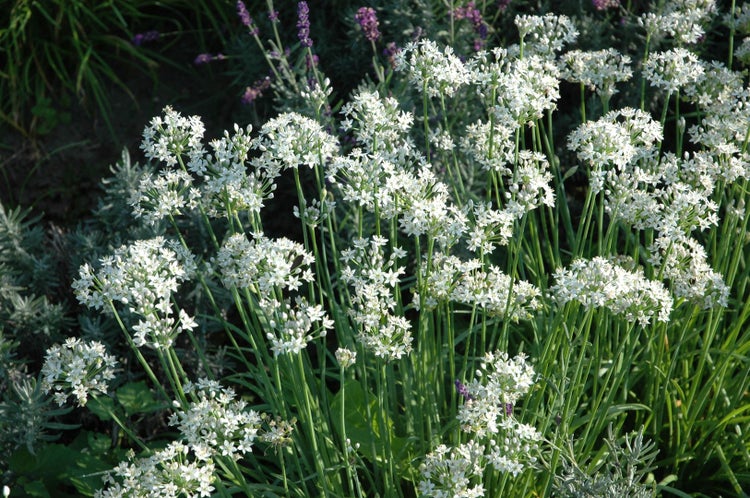 Allium tuberosum, der Schnitt-Knoblauch, auch als Knoblauch-Schnittlauch oder Chinesischer Lauch bekannt, ist eine aromatische Kräuterstaude mit zugleich hohem Zierwert. Diese Zierlauch-Art treibt im Frühjahr flache, bandförmige, sattgrüne Blätter, die fein nach Knoblauch duften, und zeigt ab Spätsommer bis in den Herbst hinein dichte, strahlend weiße, sternförmige Blütendolden auf elegant aufrecht stehenden Stielen. Der horstbildende Wuchs bleibt kompakt und formschön, das Laub erreicht meist 30 bis 40 cm Höhe, die Blütenstiele ragen bis etwa 50 bis 60 cm empor und setzen im Beet, im Kräutergarten oder im Vorgarten klare Akzente. Als vielseitige Gartenstaude eignet sich Allium tuberosum für die Bepflanzung von Beeten, Rabatten und Bauerngärten ebenso wie als pflegeleichte Kübelpflanze auf Balkon und Terrasse; in Gruppenpflanzung sorgt er für ruhige, dekorative Strukturen, als zurückhaltender Solitär bringt er filigrane Leichtigkeit. Der ideale Standort ist sonnig bis halbschattig mit durchlässigem, gern nährstoffreichem Boden, der frisch bis mäßig trocken sein darf; Staunässe wird nicht vertragen. Ein gelegentlicher Rückschnitt der Blätter fördert den Neuaustrieb, abgeblühte Dolden können für ein gepflegtes Erscheinungsbild entfernt werden. Die Staude ist robust und winterhart, treibt zuverlässig wieder aus und lässt sich zur Verjüngung alle paar Jahre teilen. Auch als Schnittblume mit dekorativen Samenständen bringt der Schnitt-Knoblauch natürliche Eleganz in hausnahe Pflanzungen und kombiniert hervorragend mit Stauden wie Salvia, Nepeta oder Prachtkerzen.