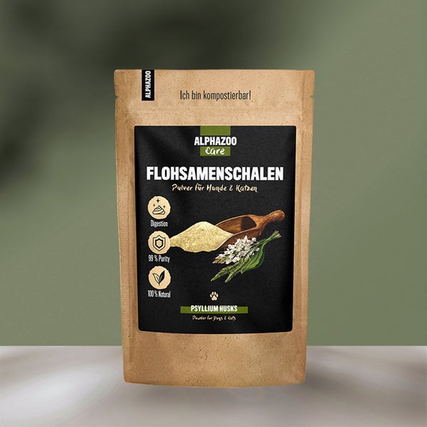 ALPHAZOO Flohsamenschalen gemahlen 500g für Hunde und Katzen I Indische Psyllium Husks
